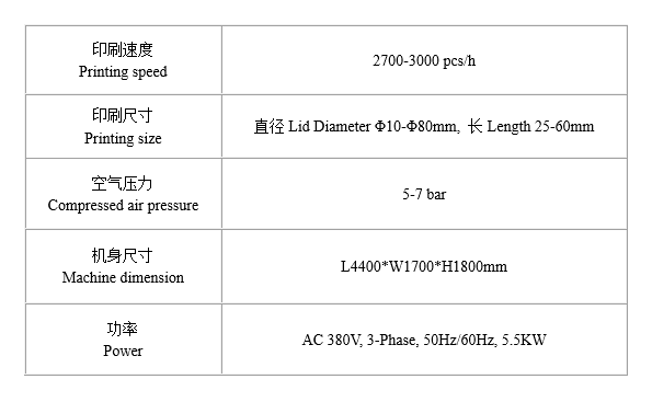 本机型主要适用于各种不同规格酒瓶盖外圆周面及顶部的烫印,承印物的材料可以是塑胶、金属等。
