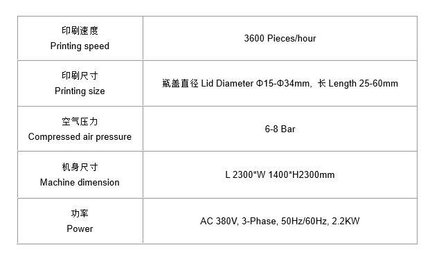 本机型主要适用于各种不同规格酒瓶盖顶面的烫印,材质为塑料和金属铝盖。