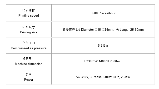 本机型适用于两头开口瓶盖的外圆周面烫金。