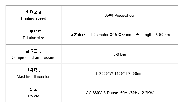 本机型主要适用于各种不同规格酒瓶盖外圆周面的烫印,材质为塑料和金属铝盖。